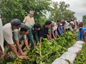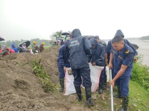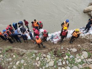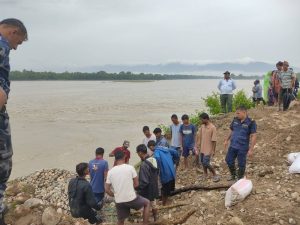 अस्थायी रुपमा नदी कटान रोक्न सोमबार नेपाली सेना, सशस्त्र प्रहरी बल, नेपाल प्रहरी, जनप्रतिनिधिसहित स्थानीयले बोरामा बालुवा, स्याउला भरेर तटबन्ध गरिने गेरुवा गाउँपालिकाका अध्यक्ष जमान सिंह केसीले बताउनु भयो ।