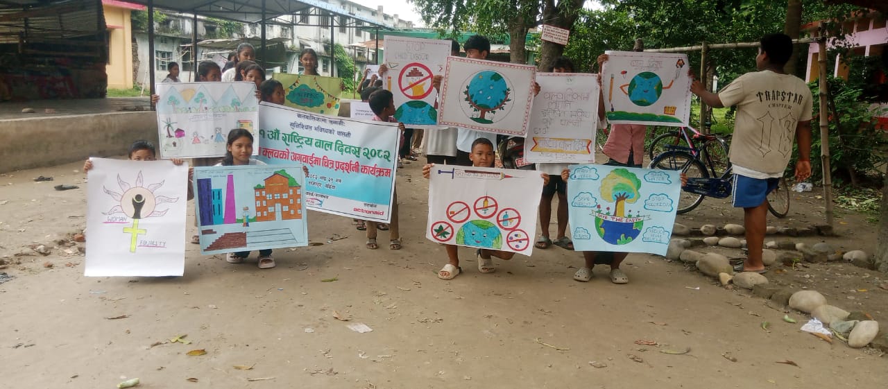 राजापुर नगरपालिका वडा नं. ३ र ४ मा रहेका दिपज्योती बाल क्लव टेडिया, कोपिला बाल क्लव रजपुरुवा, देव बाल क्लव संघर्षनगरको ५६ जना बालबालिकाहरुको उपस्थिती रहेको थियो । एक्सन एड नेपालको आर्थिक सहयोग, कमैया महिला जागरण समाज नेपाल संग को सहकार्य तथा समुदाय स्तरिय बाल क्लवहरुको आयोजनामा राजापुर बर्दियामा सचेतनामुलक चित्र प्रदर्शनी सहित राष्ट्रिय बाल दिवस २०८२ मनाईएको हो ।
